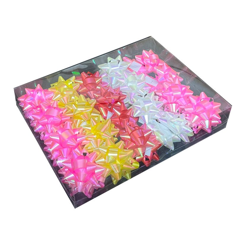 Caja de moños surtidas, Medida moño 7.5 cm., Caja por 30 unidades, 3 modelos: Lunares, Tornazolado, Metalizado