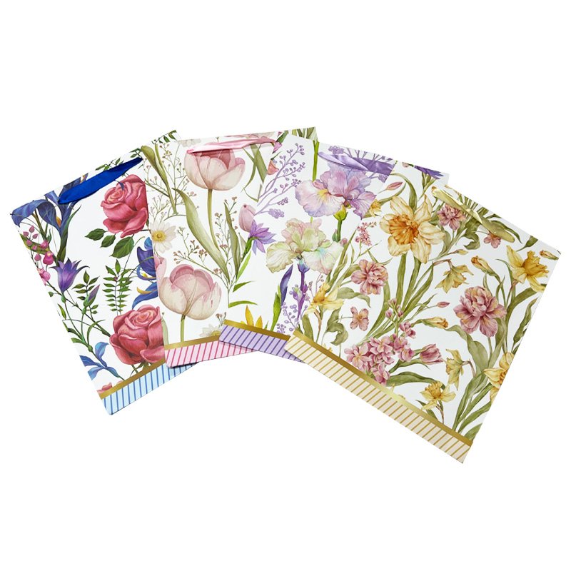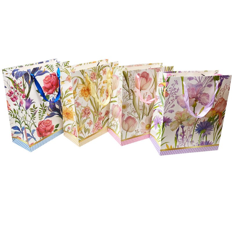 Bolsas importadas con diseños Luxe de cartulina, reforzadas con manija. Formato Mediano Medidas 26x32x12cm Paquete x12 unidades 4 modelos por paquete.