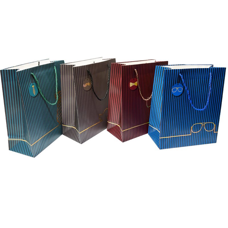 Bolsas importadas con diseños Luxe de cartulina, reforzadas con manija. Formato Mediano Medidas 26x32x12cm Paquete x12 unidades 4 modelos por paquete.