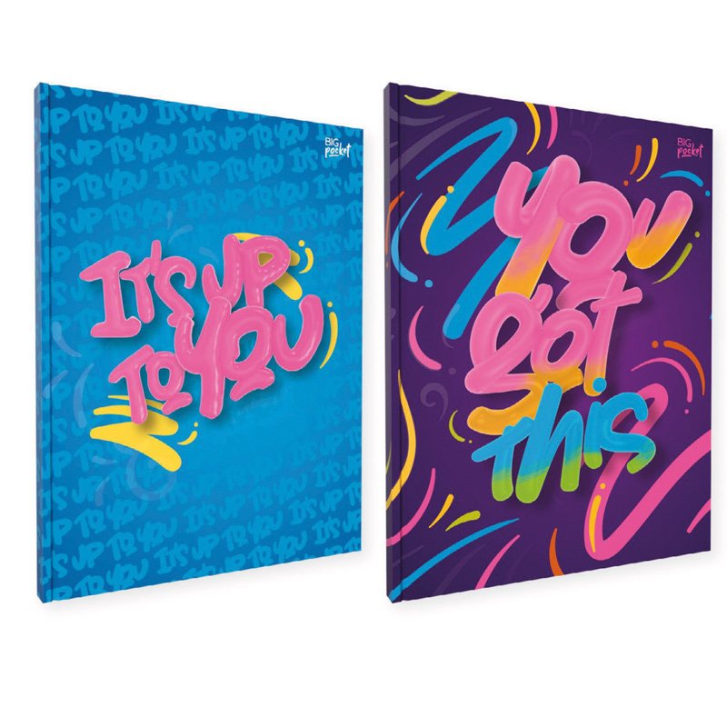 Cuaderno de tapa dura cosido, Impreso en polipropileno mate , Con sectorizado de laca UV , Contiene 48 hojas de 75 gr., Impreso interior 1 color, Medida: 16x21 cm., 2 modelos.