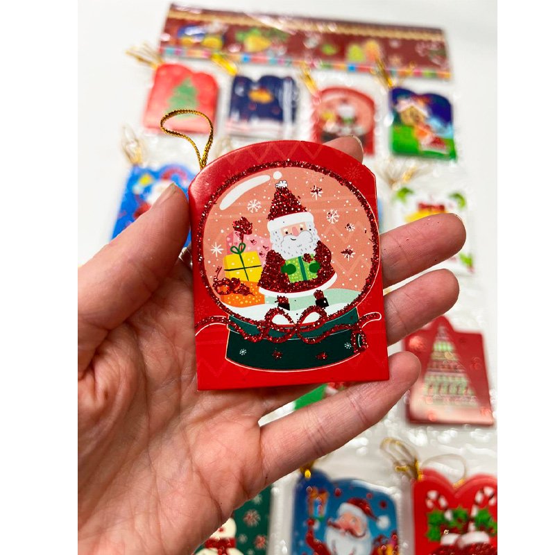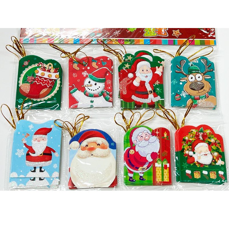 Blister x64 unidades de Tarjetitas Jolgorios con brillo y cinta dorada.