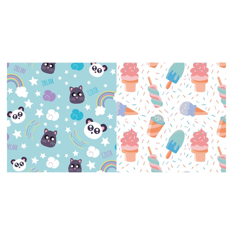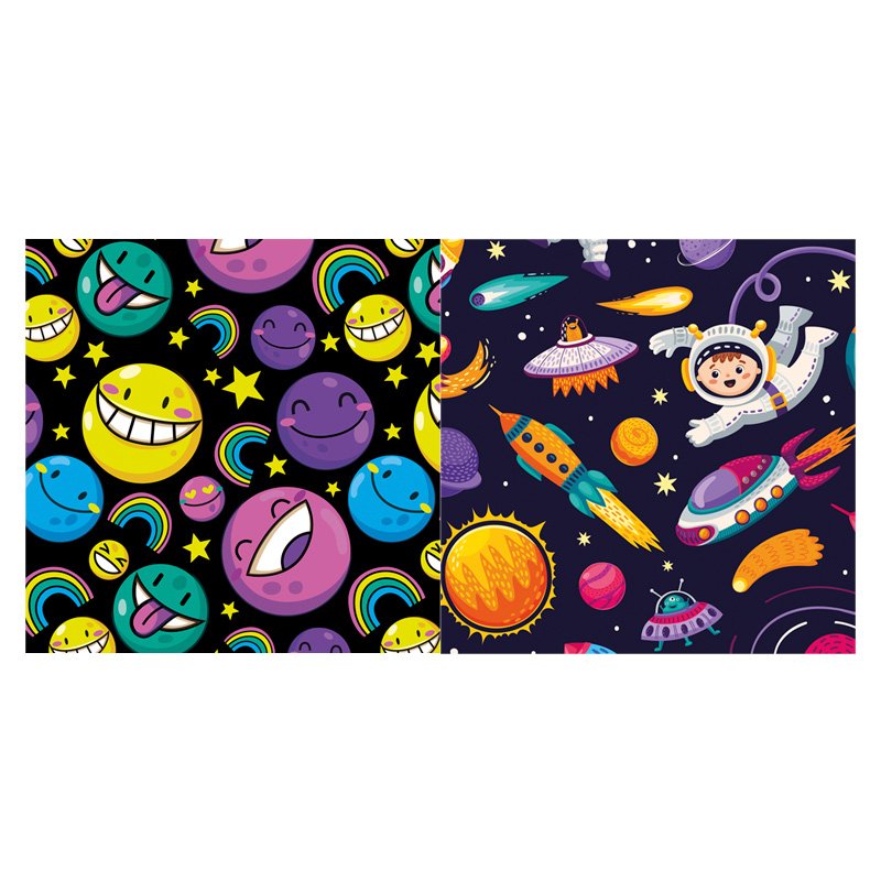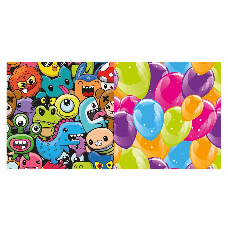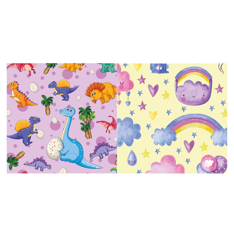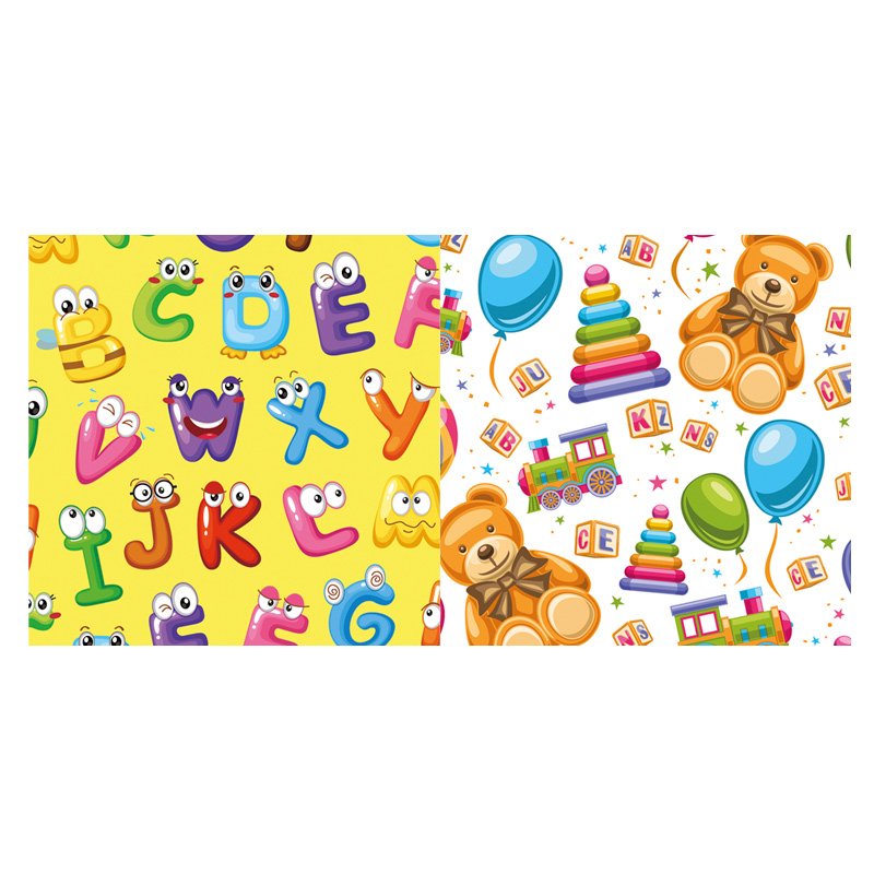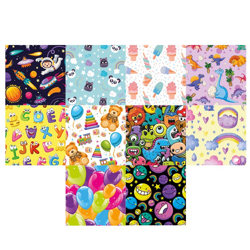 Papel de regalo satinado, 10 motivos infantil. Paquete por 50 hojas. Medida 70x100 cm.