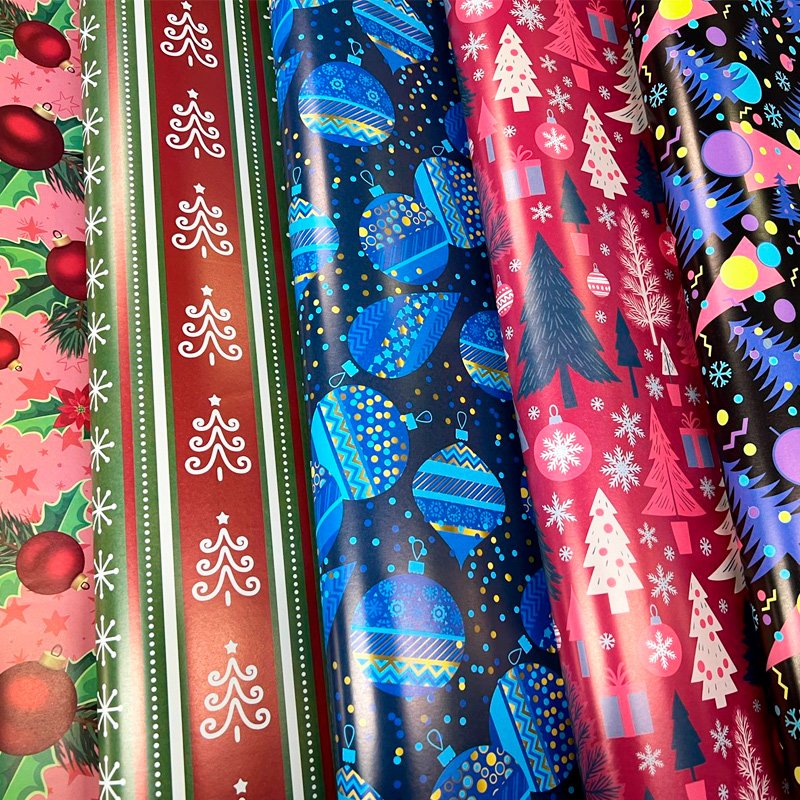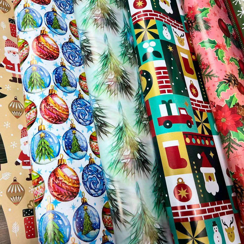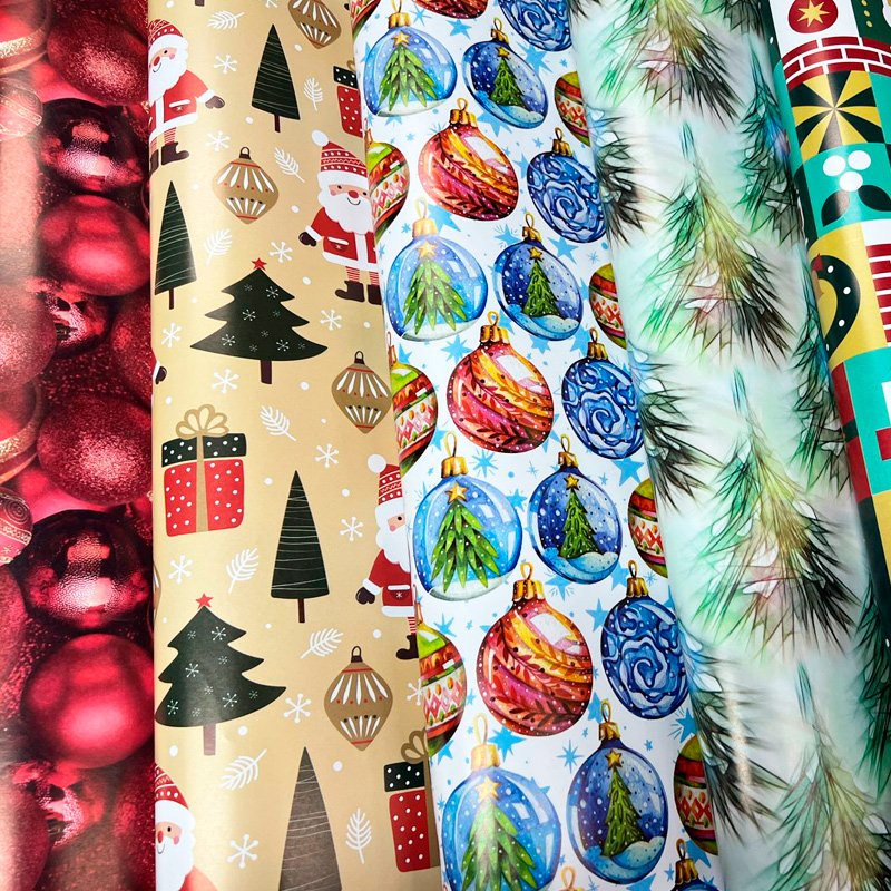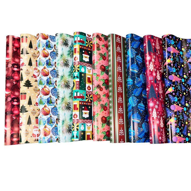 Papel de regalo satinado, 10 motivos surtido. Paquete por 50 hojas. Medida 70x100 cm.